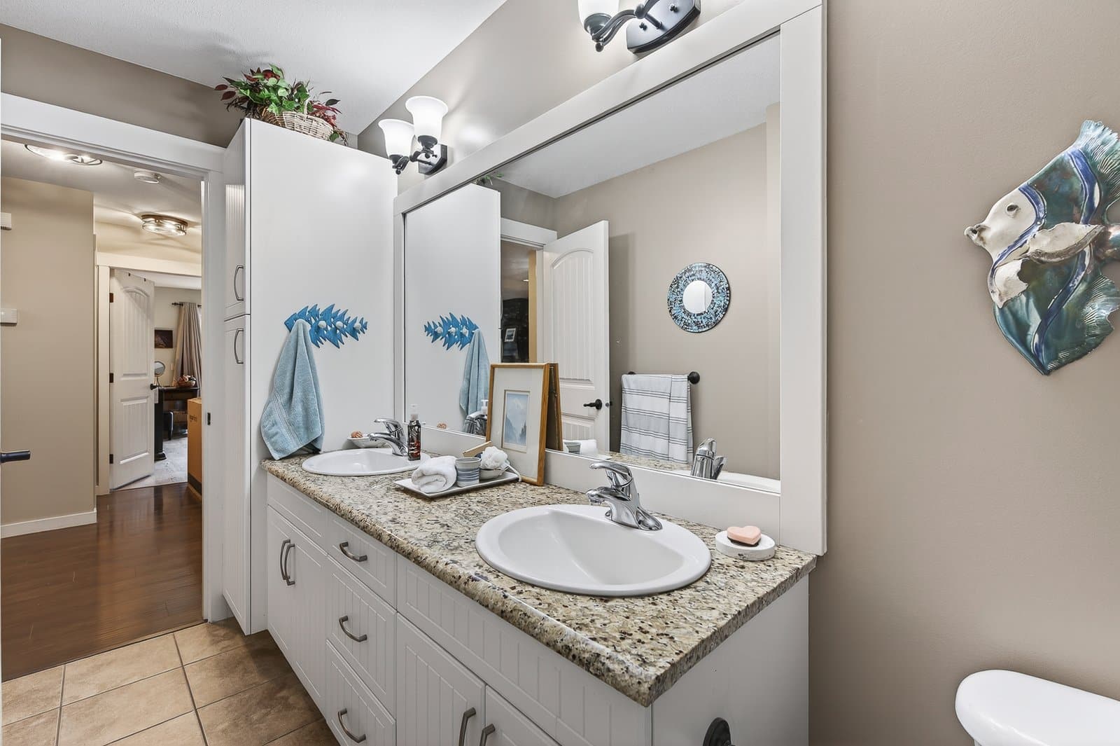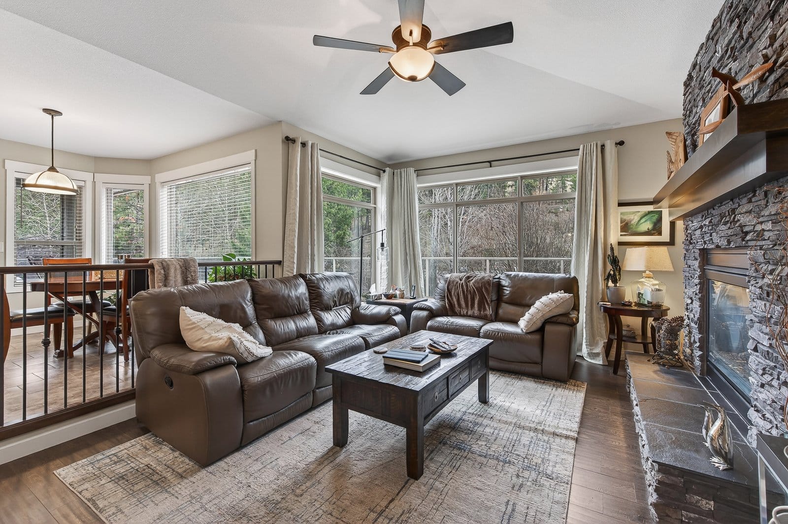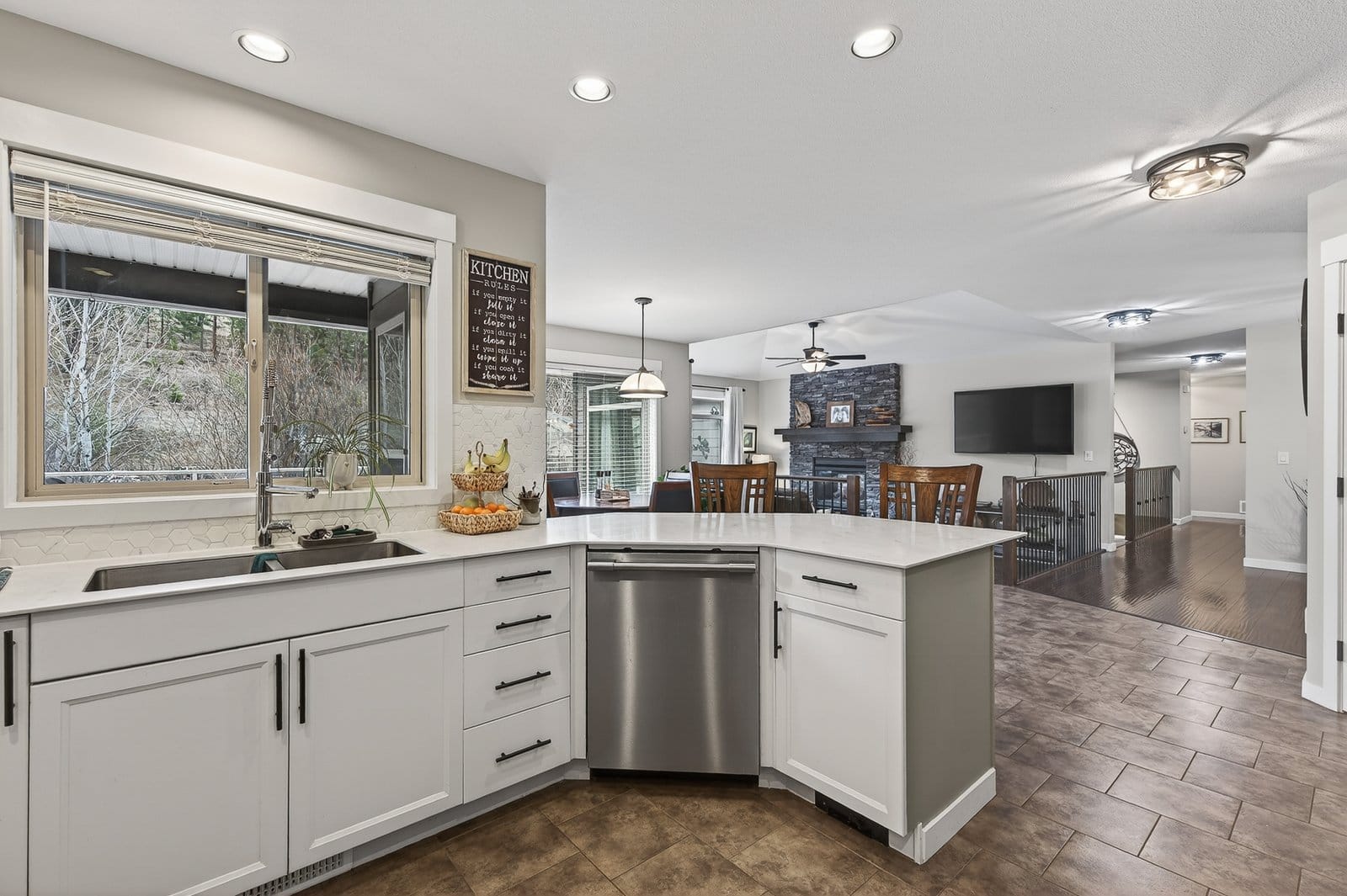 Located on a quiet cul-de-sac just steps from Rose Valley Regional Park, this custom-built home offers privacy, space, and direct access to over 40 km of hiking and biking trails with stunning views. Situated on a rare 0.40 acre lot, the property features a natural hillside backdrop, nearby Faulkner Creek, RV parking, and a traffic-calmed lane shared by only four homes—creating a peaceful setting. Built in 2010, this spacious 3,652 sq. ft. grade-level entry home offers a bright open-concept layout with over 2,100 sq. ft. on the main floor. The main level includes three bedrooms, inviting living and family rooms connected by a double-sided fireplace, and access to a large partially covered wraparound deck with gas BBQ hookup and outdoor water tap—perfect for entertaining and enjoying the natural setting. The primary suite features a private balcony, walk-in closet, and four-piece ensuite. Main floor laundry adds convenience, while the lower level offers additional bedrooms, flexible living space, and storage plumbed for a potential second laundry area. Additional features include a high-efficiency furnace, central air conditioning, central vacuum, drought-tolerant landscaping, and an oversized triple garage with extra-deep bays and water access. Rose Valley is one of West Kelowna’s most sought-after neighbourhoods, offering access to Mar Jok Elementary, sports fields, Rosewood Centre, and optional community amenities including pool, tennis courts, and garden spaces.