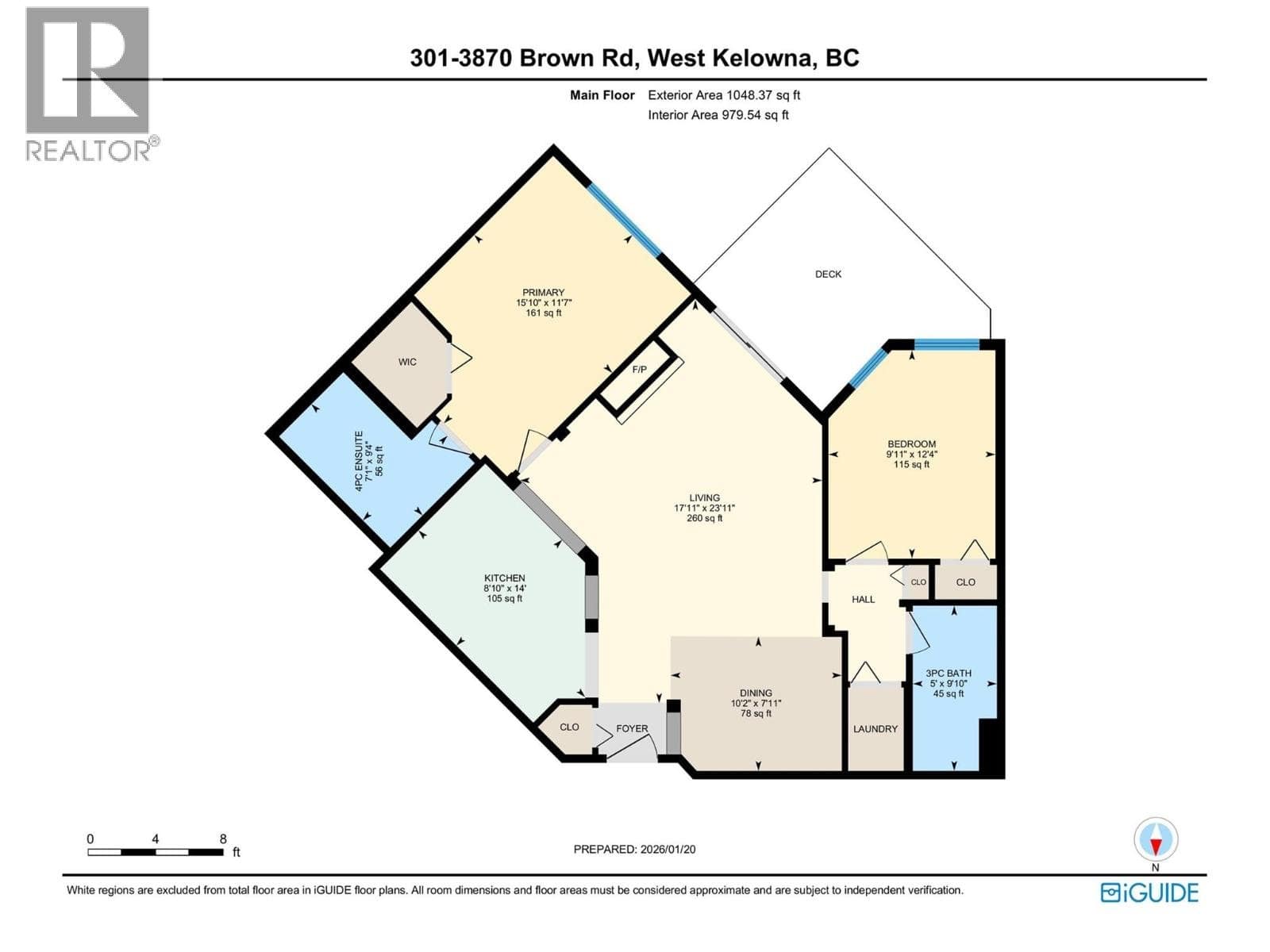 Located in the desirable Monticello 55+ community, this well-maintained 2-bedroom, 2-bathroom condo offers a comfortable and social lifestyle in a peaceful setting. With 1,048 sq ft of thoughtfully designed living space, the open layout is filled with natural light and extends onto a 133 sq ft balcony, where you can take in mountain scenery along with a peek at the lake. The living area features a cozy fireplace that creates a warm and welcoming atmosphere,. The generous primary bedroom easily fits a full bedroom set and includes a walk-in closet with convenient access to the main bathroom. A second bedroom and bathroom provide flexibility for guests or hobbies. Additional conveniences include in-suite laundry, a separate storage area, and secure underground parking. One small dog or cat is permitted, and the low monthly strata fees help keep ownership affordable. Residents of Monticello enjoy access to an active clubhouse that hosts regular social events, from games and potlucks to seasonal celebrations, fostering a strong sense of community. With shopping, banking, coffee shops, and local wineries all within walking distance, this home offers an easy, low-maintenance Okanagan lifestyle in a welcoming neighbourhood.